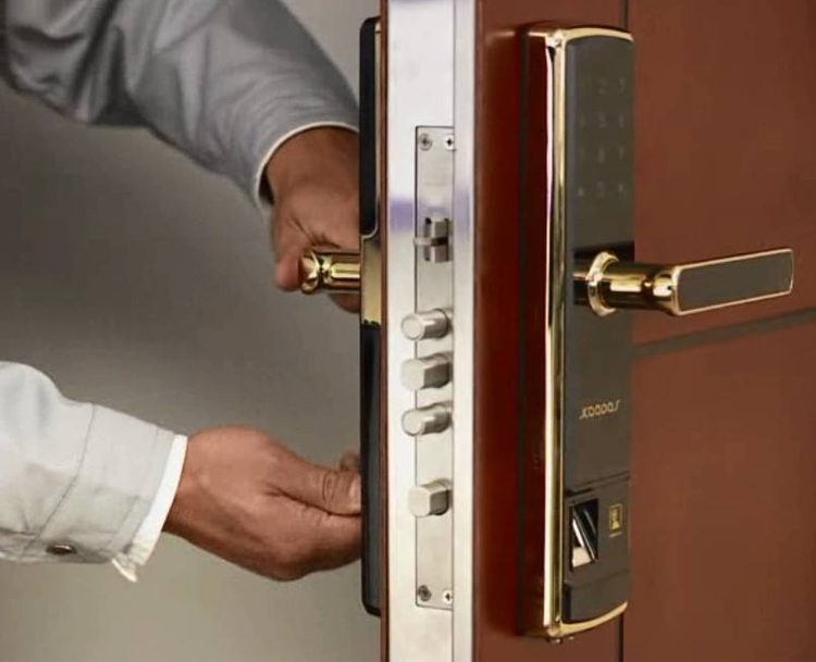 智能指紋鎖安裝常見問題 手柄回彈困難,造成開門困難 常見原因:鎖體安裝時傾斜或偏位,方鋼太長頂住手柄。 解決辦法:可調整前后面板位置需要判斷方鋼是否卡住(卡住需擴孔)